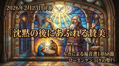 ルカによる福音書「沈黙の後にあふれる賛美」 2026.2.23 伝道師 青木宗達 新約聖書 ルカによる福音書1章68節イスラエルの神である主は、ほめたたえられますように。主はその民を訪れて、これを贖われた。(協会共同訳聖書) わたした...